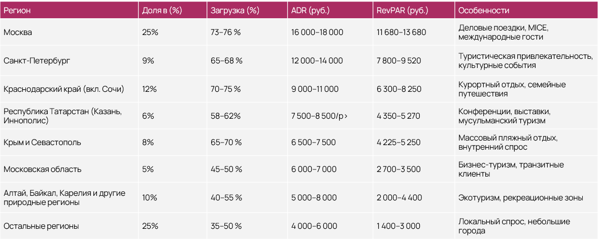 Основные гостиничные регионы России (2025 год, оценочно)