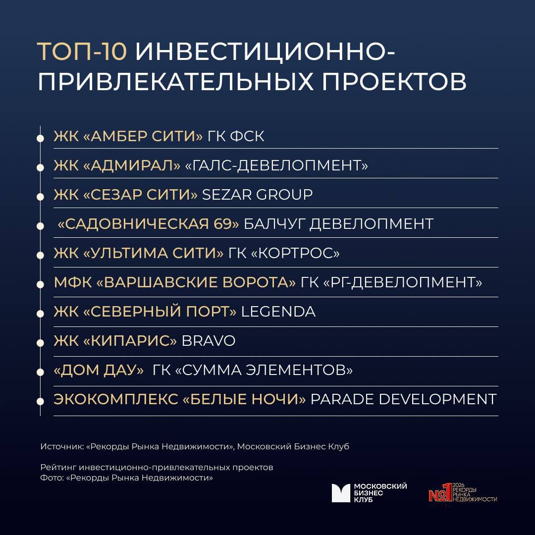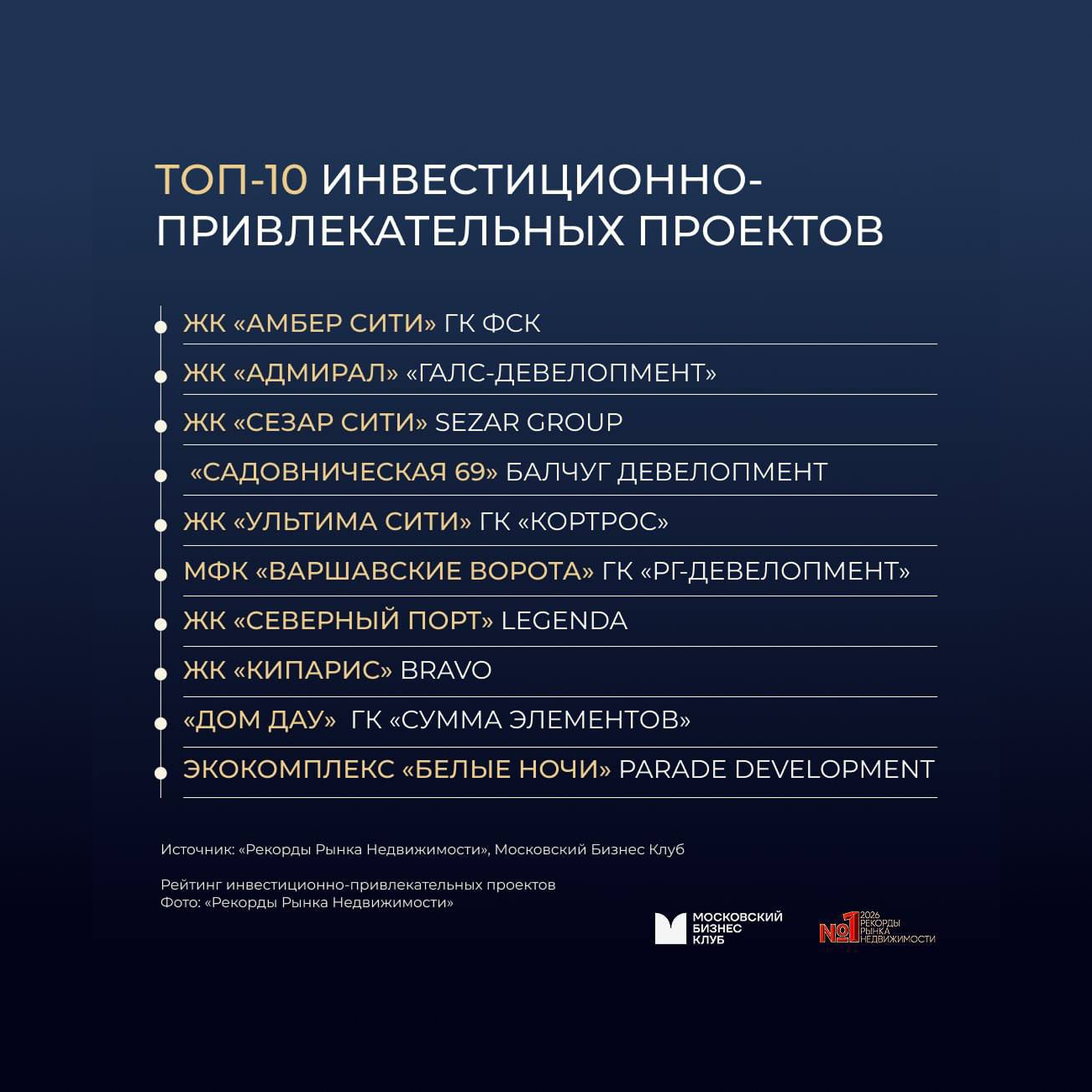 👉 «Ведомости» опубликовали рейтинг «Топ-10 лучших инвестиционных объектов недвижимости 2026» от Московского бизнес клуба и премии «Рекорды рынка недвижимости». Кто в него вошел, можно посмотреть тут.